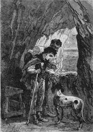 – Ne – respondis Pencroff – kaj se li ne estis tie, tiuj fiuloj certe jam mortigis lin! Sed ĉu ĉi tiuj aĉuloj havas konstantan rifuĝejon ie sur la insulo, kie oni povus elspuri ilin kiel sovaĝan beston?