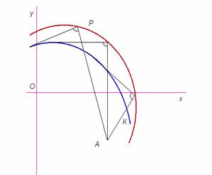 Wprowadzamy oznaczenia: (x,y) - współrzędne (bieżące) punktu krzywej K, A(xo,yo) - spodek podery, P(xp,yp) - szukany punkt krzywej spodkowej. Równanie stycznej do krzywej przechodzącej przez punkt P: yp - x = k(xp - x) Równanie prostej prostopadłej do tej stycznej i przechodzącej przez punkt A: