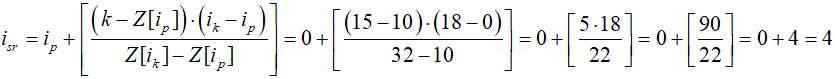 isr := ip+(k-Z[ip])*(ik-ip) div (Z[ik]-Z[ip]);