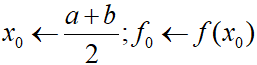 f0 < 0, to b ← x0 inaczej a ← x0; fa ← f0 |