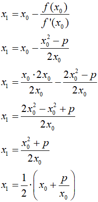 Przyjmijmy za punkt startowy pewną liczbę x0. Wtedy pierwsze przybliżenie otrzymamy wg wzoru: