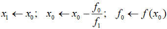 | x1 | – | poprzednie przybliżenie pierwiastka funkcji f(x); x1 ∈ R |