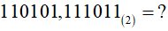Obliczyć wartość stałoprzecinkowej liczby dwójkowej 110101,111011(2).