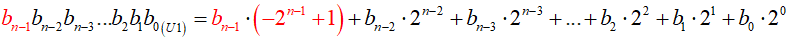 Najmniejszą wartość liczba U1 przyjmuje dla bitu znakowego równego 1 (waga ujemna) i pozostałych bitów równych 0. Ponieważ w tym przypadku do wagi bitu znakowego nic nie dodajemy, otrzymujemy: