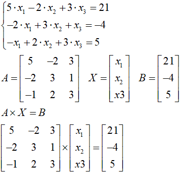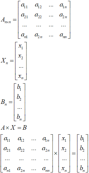 Wektor X jest macierzą niewiadomych x.