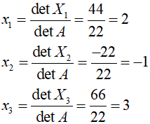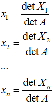 X[k] = det(n,Xi) / detA;