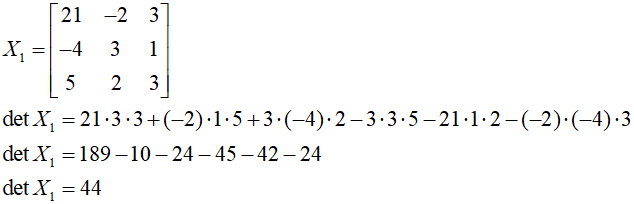 Obliczamy wyznacznik macierzy X1: