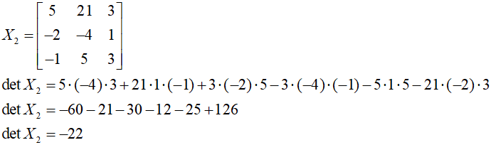 Obliczamy wyznacznik macierzy X2: