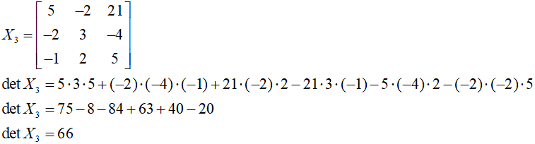 Obliczamy wyznacznik macierzy X3: