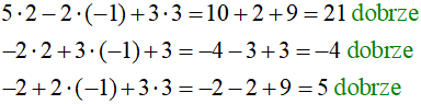 Sprawdzamy, czy wyliczone wartości niewiadomych spełniają równania: