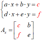 Macierz Ax powstaje z macierzy A, gdy kolumnę współczynników zmiennej x zastąpimy macierzą wyrazów wolnych B: