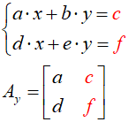 Macierz Ay powstaje z macierzy A, gdy kolumnę współczynników zmiennej y zastąpimy macierzą wyrazów wolnych B: