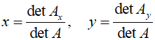 Układ posiada rozwiązanie, jeśli wyznacznik macierzy A jest różny od 0. Wykorzystując wyznaczniki, możemy teraz zapisać: