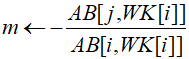 m = -AB[j][WK[i]] / AB[i][WK[i]];