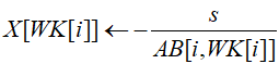 X[WK[i]] = s / AB[i][WK[i]];
