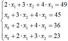 metodą eliminacji Gaussa-Crouta --------------------------------------------------------------------- Wpisz dane wejściowe: 4 0 2 3 4 49 1 0 3 4 45 1 2 0 4 36 1 2 3 0 23 x0 = 2.00000 x1 = 3.00000 x2 = 5.00000 x3 = 7.00000 |