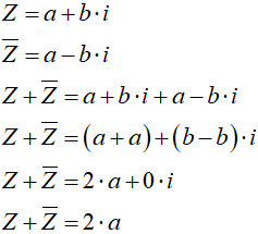 Suma liczby zespolonej z jej liczbą sprzężoną daje zawsze liczbę rzeczywistą, ponieważ części urojone znoszą się: