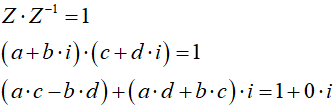 Korzystając z definicji liczby odwrotnej oraz z zasad mnożenia liczb zespolonych, mamy: