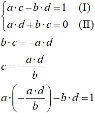 Z własności mnożenia liczb zespolonych wyprowadzimy wzór na odwrotność liczby zespolonej:
