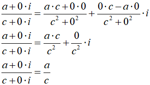 Musi tak być, ponieważ liczba zespolona z częścią urojoną równą 0 leży na osi rzeczywistej, czyli jest zwykłą liczbą rzeczywistą. Zasady arytmetyki liczb zespolonych muszą być z tego powodu spójne z zasadami arytmetyki liczb rzeczywistych. Inaczej cała ta teoria nadawałaby się tylko do kosza!