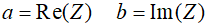 Na osi rzeczywistej mamy współrzędną aliczby Z. Na osi urojonej mamy współrzędną b liczby Z. Zapisujemy to formalnie w sposób następujący: