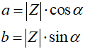 Kąt α jest katem, który tworzy odcinek z osią rzeczywistą. Wykorzystując trygonometrię, piszemy: