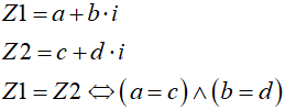 Dwie liczby zespolone są równe, jeśli ich części rzeczywiste i urojone są równe: