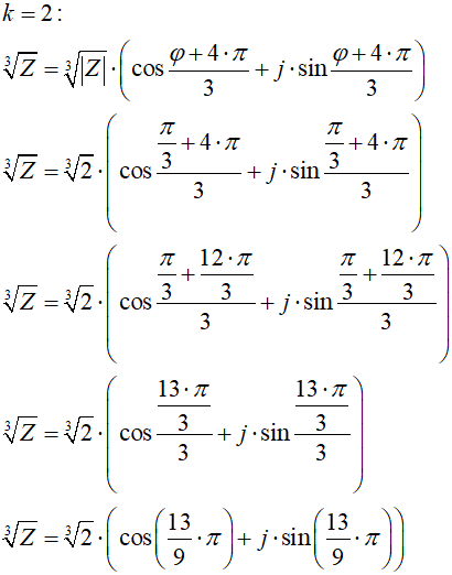 Powyższy wzór jest w rzeczywistości uproszczonym zapisem n wzorów, a w każdym należy przyjąć inną wartość współczynnika k, który przechodzi przez kolejne wartości od 0 do n – 1. Na przykład: