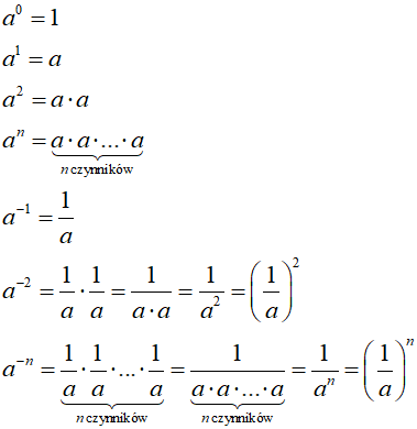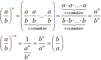 Zwróć uwagę, że otrzymaliśmy wykładniki ułamkowe, które odnoszą się do pierwiastków. Na koniec bardzo ważny wzór, który definiuje wymierne wykładniki potęgowe:
