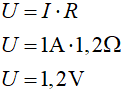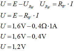 Mając prąd, obliczamy spadek napięcia na odbiorniku, który będzie równy napięciu wyjściowemu ogniwa: