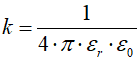 Określa ono siłę oddziaływania elektrostatycznego pomiędzy dwoma ładunkami Q1 i Q2, które znajdują się względem siebie w odległości r. Jak każde prawo, jest ono prawdziwe przy pewnych założeniach: ładunki muszą być punktowe. Inaczej należy uwzględniać rozkład ładunków na powierzchni ciała, a to znacznie komplikuje rachunki i wymaga stosowania całek. Nie będziemy jednak rozważać aż tak skomplikowanych przypadków. Faktem jest, że prawo Coulomba wprowadza pewien model matematyczny i opisuje pewne zjawisko elektryczne: na ładunki umieszczone w polu elektrycznym działają siły i potrafimy te siły wyznaczać. Współczynnik k, który widnieje we wzorze jest współczynnikiem proporcjonalności. Dzięki niemu możemy postawić znak równości. Współczynnik k zależy od własności środowiska, w którym zostało utworzone pole elektryczne. Okazuje się, że różne materiały posiadają różne wartości współczynnika k. Definiujemy go jako: