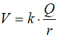 Jeśli ładunek Q jest punktowy, to można dla niego określić potencjał w każdym punkcie przestrzeni wg prostego wzoru: