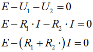 Zgodnie z II prawem Kirchhoffa, suma tych spadków napięć jest równa napięciu zasilającemu:
