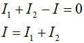 A uogólniając na dowolną liczbę prądów wpływających i wypływających z węzła sieci, otrzymujemy wzór dla pierwszego prawa Kirchhoffa:
