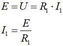 Prąd I1 płynie przez opornik R1 i zgodnie z prawem Ohma wywołuje na tym oporniku spadek napięcia U, który musi być równy E wg II prawa Kirchhoffa.
