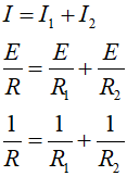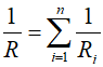 Otrzymaliśmy wynik: odwrotność oporności zastępczej w połączeniu równoległym oporników jest sumą odwrotności ich oporności. Wynik ten można uogólnić na n oporników połączonych równolegle: