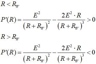 Wynika z tych rachunków, że największa moc będzie pobierana ze źródła wtedy, gdy oporność odbiornika będzie równa oporności wewnętrznej źródła. Nazywamy to dopasowaniem obciążenia.