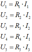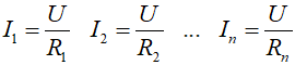 Przy połączeniu równoległym oporników na wszystkich opornikach występuje to samo napięcie U. Przez każdy opornik przepływa prąd zgodnie z prawem Ohma:
