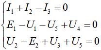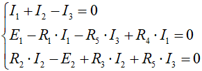 Teraz wypisujemy równania z I i II prawa Kirchhoffa:
