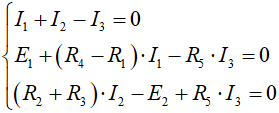 Otrzymujemy układ 3 równań liniowych. Spadki napięć zastępujemy wzorami z prawa Ohma: