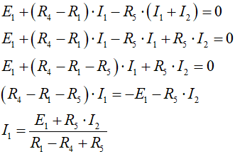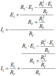 Wyliczoną wartość prądu I2 wstawiamy do wzoru na I1: