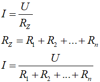 Dla n oporników połączonych szeregowo oporność zastępcza jest sumą wszystkich oporności: