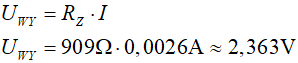 Aby wyznaczyć napięcie UWY, dokonujemy odpowiednich transformacji: