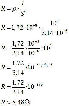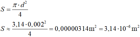 Obliczyć oporność 1km okrągłego przewodu miedzianego o średnicy 2mm.
