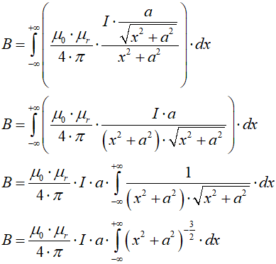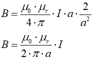 Odcinek a jest prostopadły do przewodu, zatem nazwijmy go promieniem r i powiedzmy, że w promieniu r wokół nieskończenie długiego przewodu z prądem indukcja magnetyczna ma wartość: