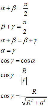 Utwórzmy z przewodnika pętlę w kształcie okręgu o promieniu R. Układ współrzędnych ustawmy, tak aby oś pętli była zgodna z osią OY, a środek pętli znalazł się w środku układu współrzędnych. Na osi OY wybierzmy sobie punkt P, który leży w odległości a od początku układu współrzędnych: