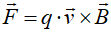 We wzorze tym siła jest wektorem, który powstaje jako iloczyn wektorowy prędkości ładunku i indukcji pola magnetycznego. Iloczyn wektorowy jest zawsze prostopadły do mnożonych wektorów. Powstającą siłę nazywamy siłą Lorentza. Indukcja magnetyczna wyznacza linie pola magnetycznego.