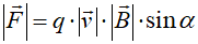 magnetycznego na ładunek q – wartość ładunku v – prędkość ładunku B – indukcja magnetyczna pola α – kąt pomiędzy wektorem prędkości a wektorem indukcji |