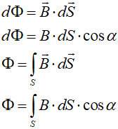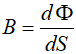We wzorze tym dS jest wektorem normalnym do nieskończenie małego wycinka powierzchni S. Z pierwszego wzoru można określić wartość indukcji magnetycznej, jeśli znamy rozkład strumienia magnetycznego na danej powierzchni: