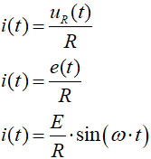 Prąd płynący przez obwód jest prądem przemiennym. Prąd jest w fazie z napięciem zasilającym (czyli z SEM). Wartość maksymalna prądu jest równa: